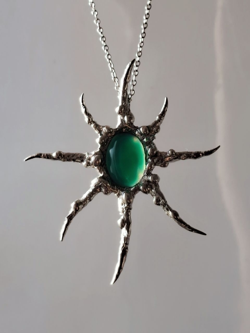 آویز دست ساز سنگ عقیق سبز معدنی با تکنیک سولدرینگ کد I670