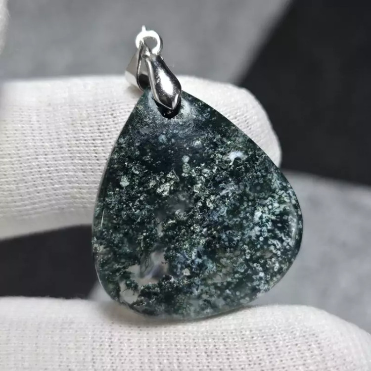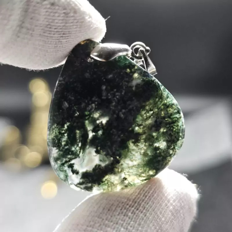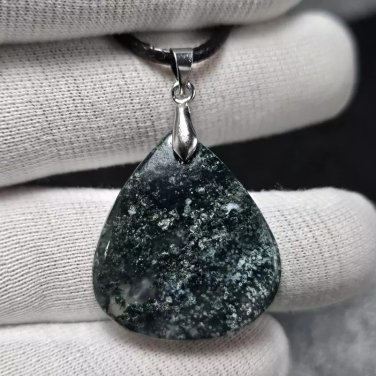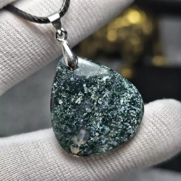 گردن آویز سنگ طبیعی عقیق خزه ای معدنی