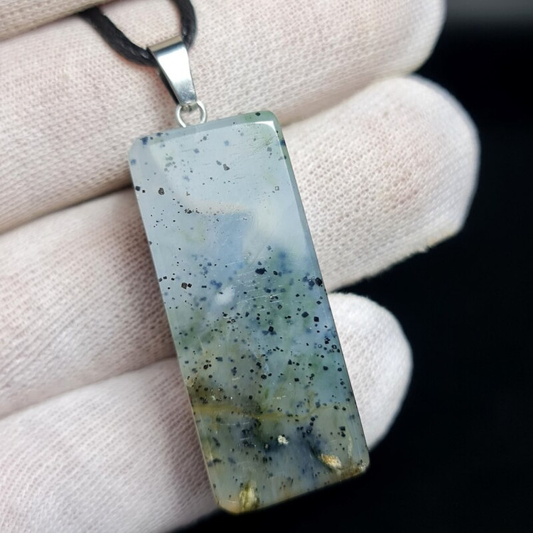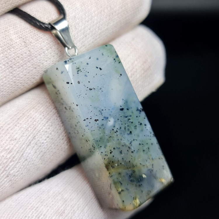 آویز درشت سنگ صد درصد طبیعی عقیق سبز زغالدار معدنی . تراش نا منظم . کد 30162