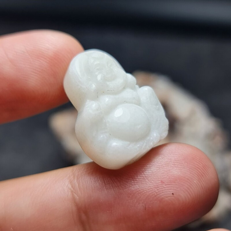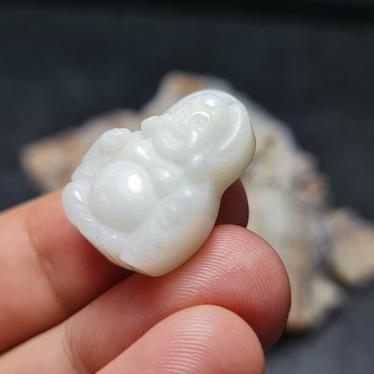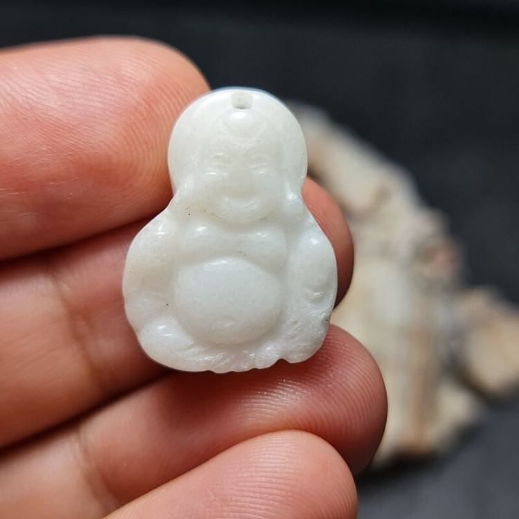 گردن آویز سنگ جید کوارتز معدنی با کاروینگ فوق العاده کد 27511