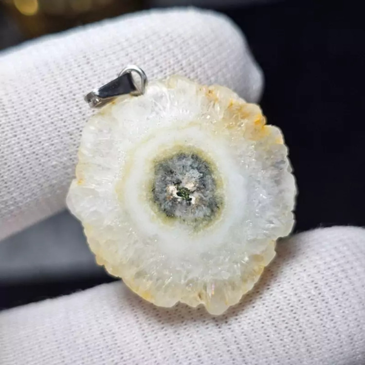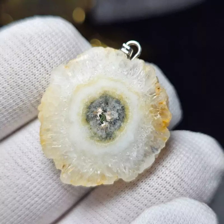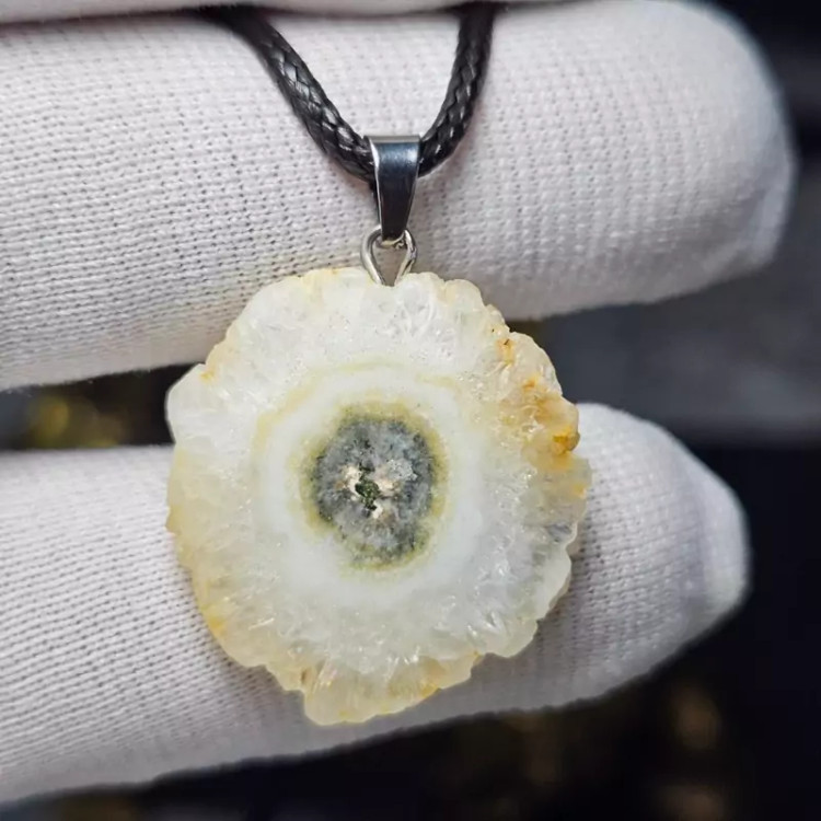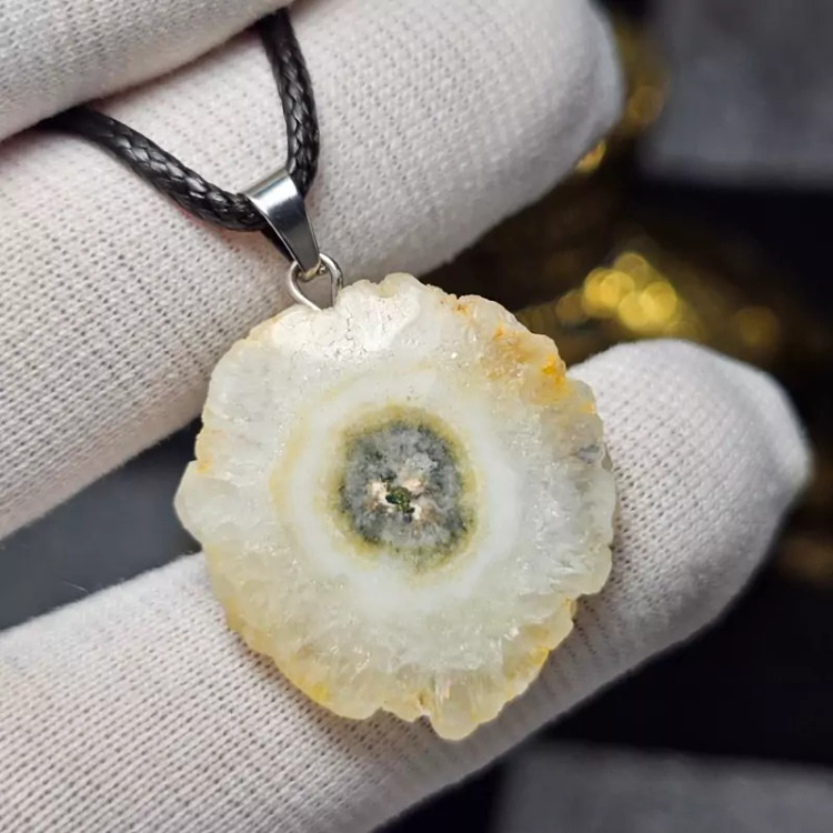 گردن آویز اسلایس سنگ طبیعی کوارتز خورشیدی معدنی