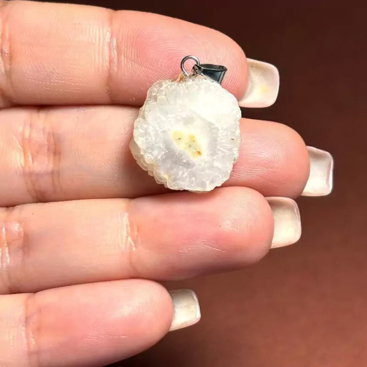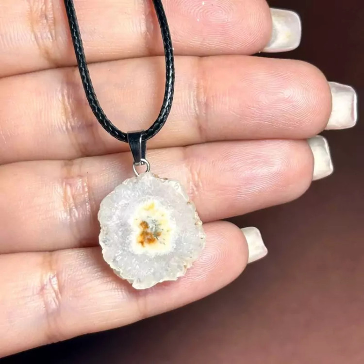 آویز گردنبند اسلایس سنگ طبیعی کوارتز خورشیدی معدنی کد 60219
