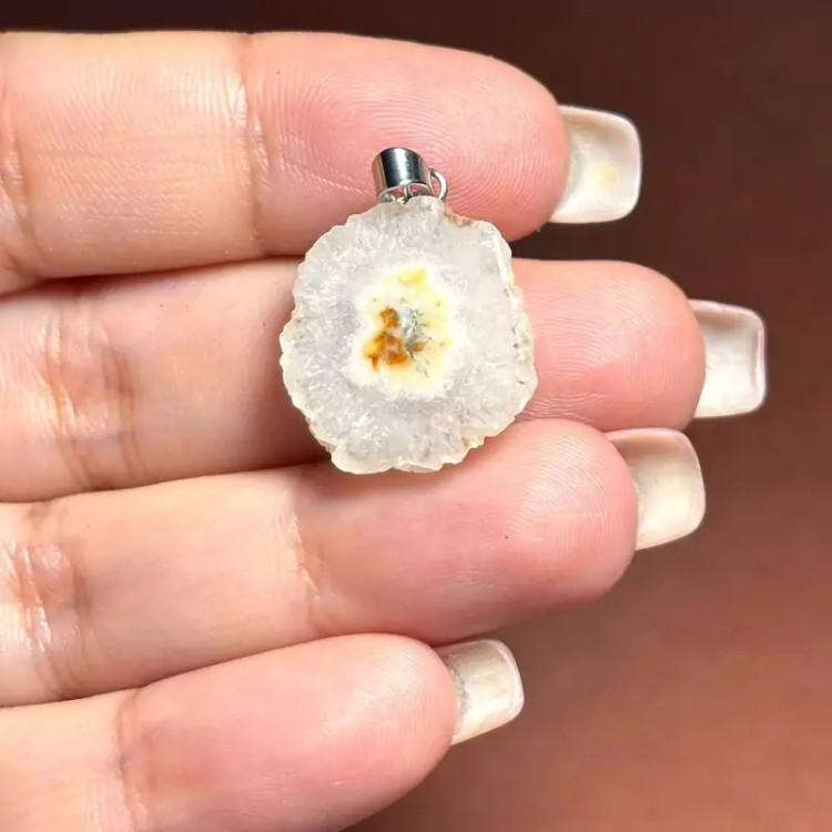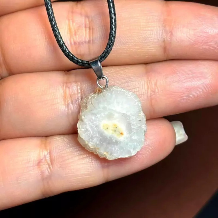 آویز گردنبند اسلایس سنگ طبیعی کوارتز خورشیدی معدنی