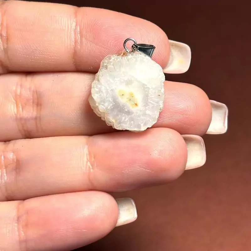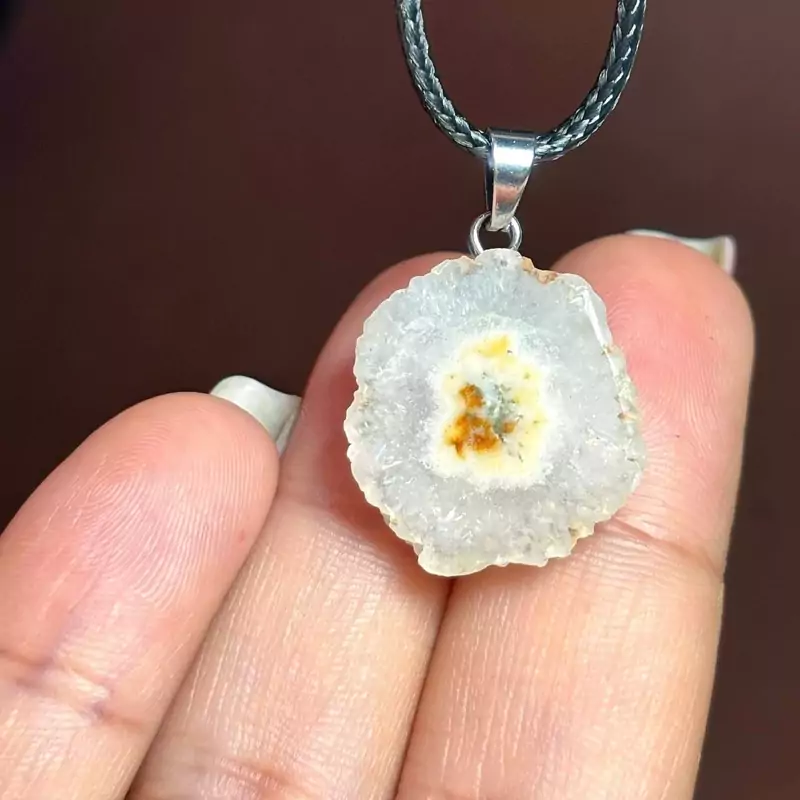 آویز گردنبند اسلایس سنگ طبیعی کوارتز خورشیدی معدنی