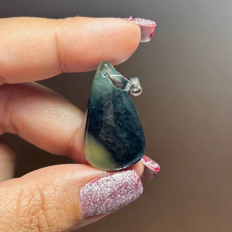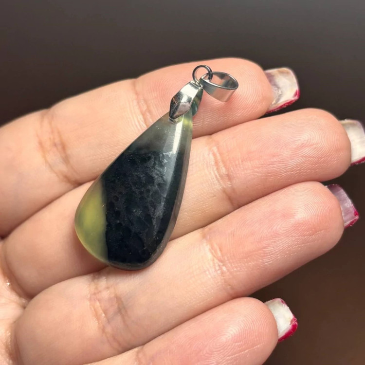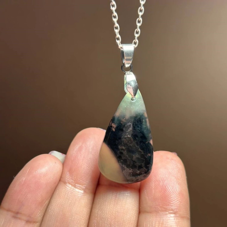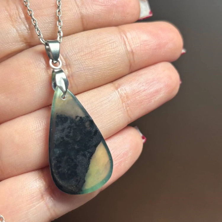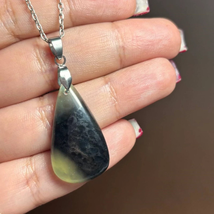 آویز گردنبند سنگ طبیعی یشم معدنی با زنجیر