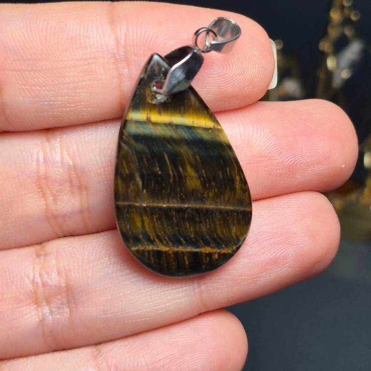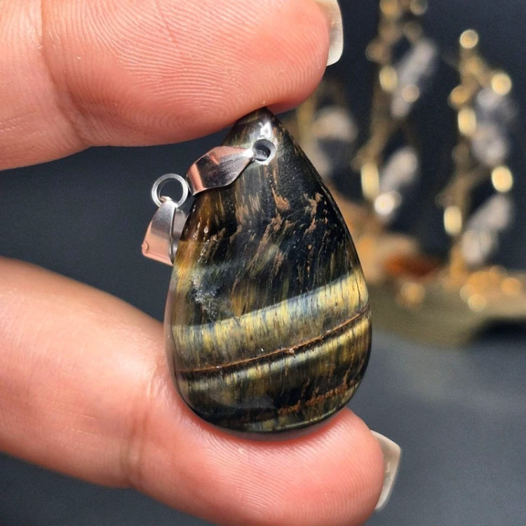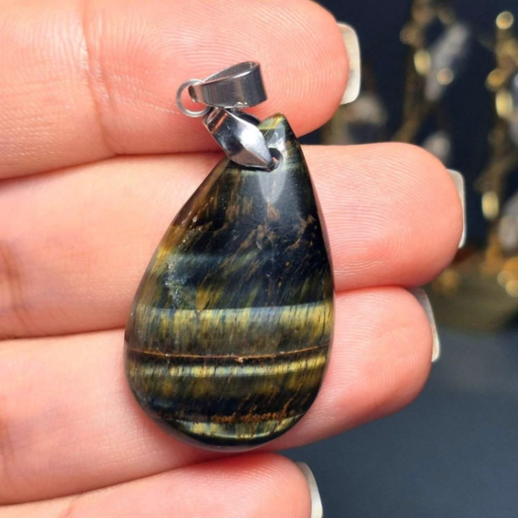 آویز گردنبند سنگ طبیعی چشم ببر معدنی