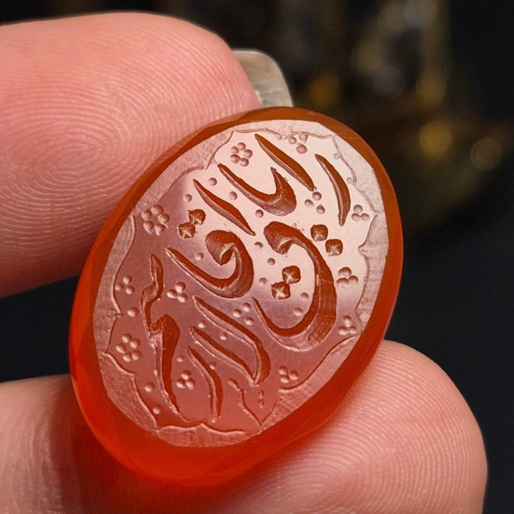 نگین سنگ عقیق معدنی با خط دست امضای میر