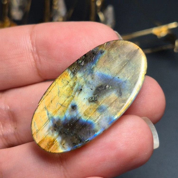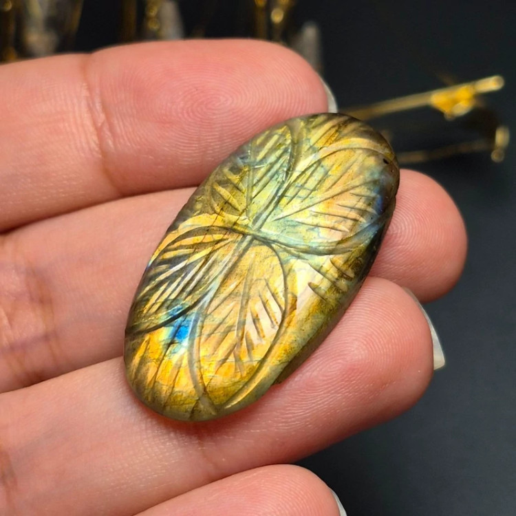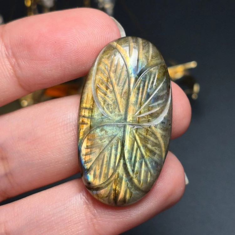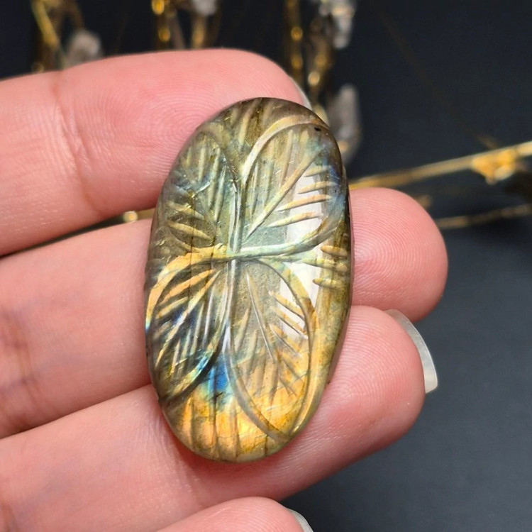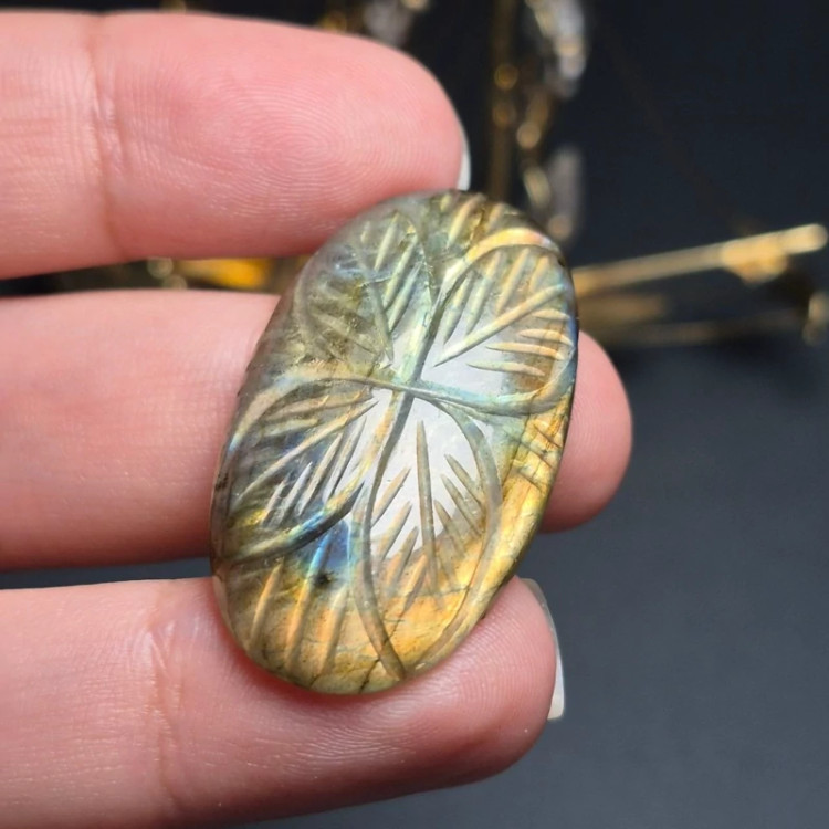 نگین درشت سنگ لابرادوریت معدنی حکاکی زیبای دست کد 60489