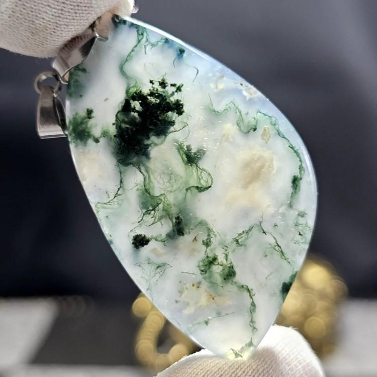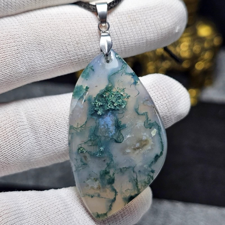 آویز گردنبند سنگ طبیعی عقیق خزه ای معدنی