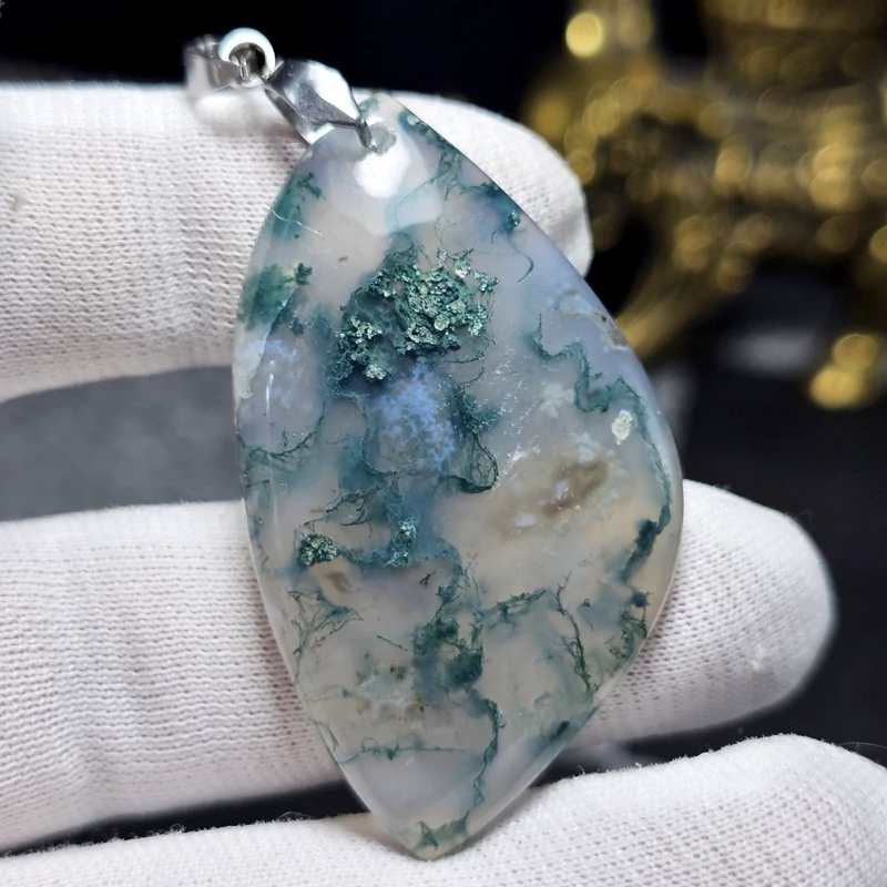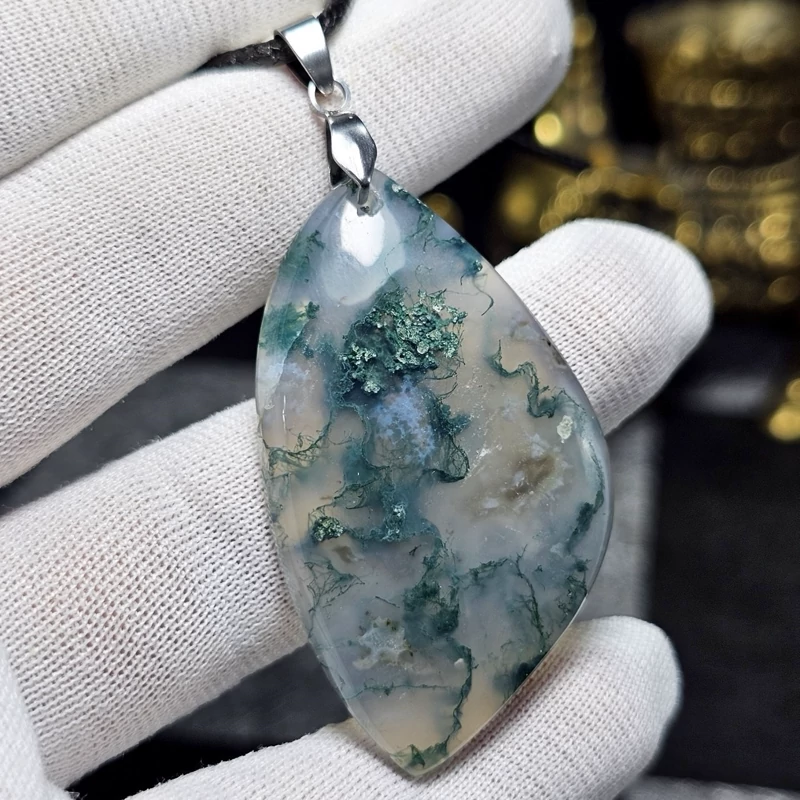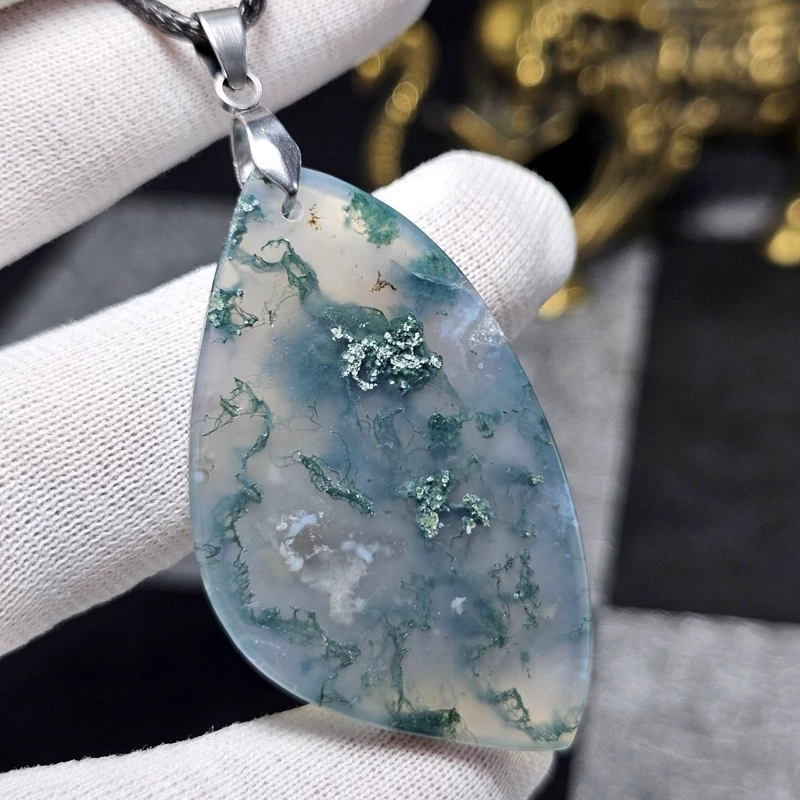 آویز گردنبند سنگ طبیعی عقیق خزه ای معدنی