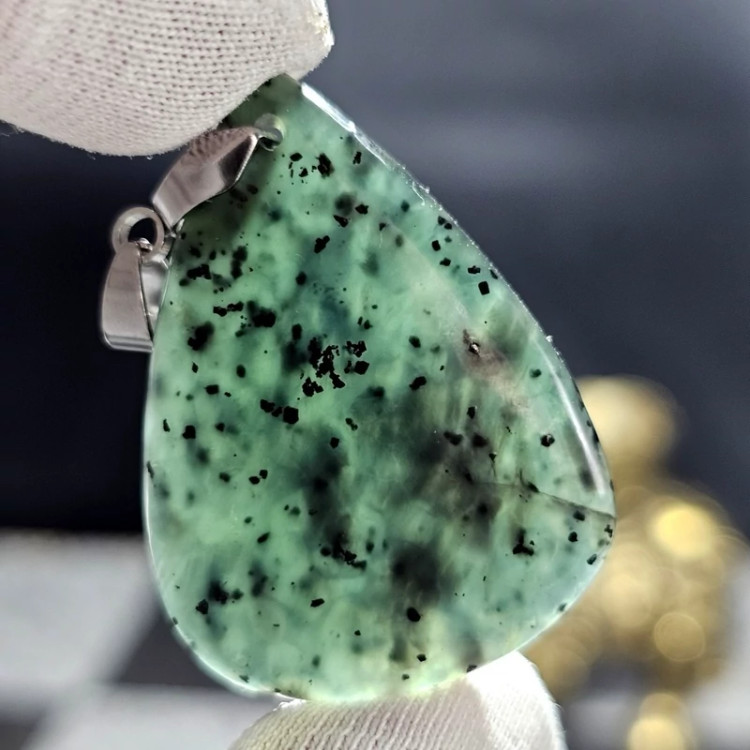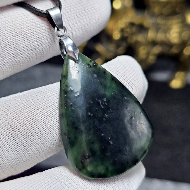 آویز گردنبند سنگ یشم زغالدار معدنی