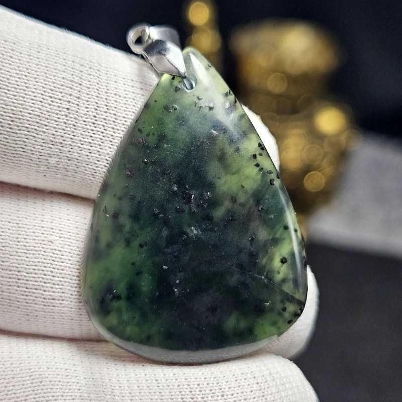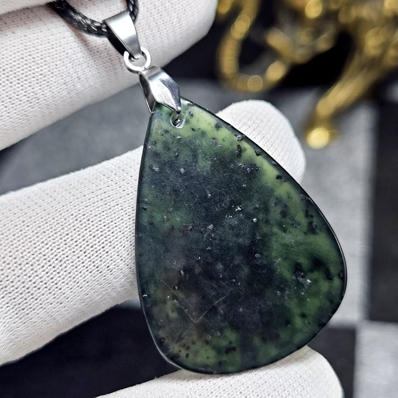 آویز گردنبند سنگ یشم زغالدار معدنی