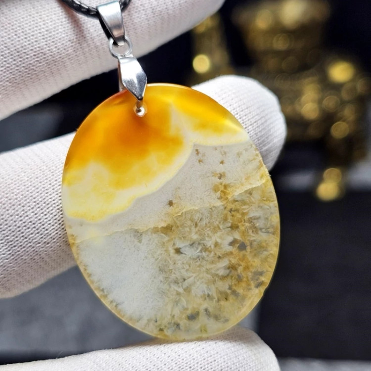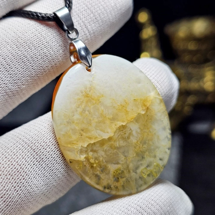 آویز گردنبند درشت سنگ عقیق ژئود معدنی