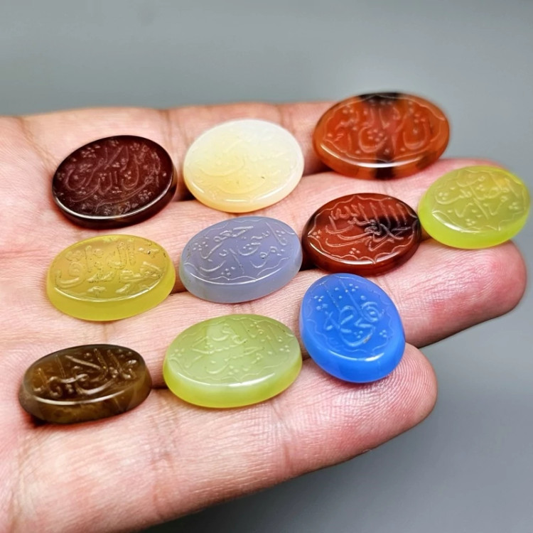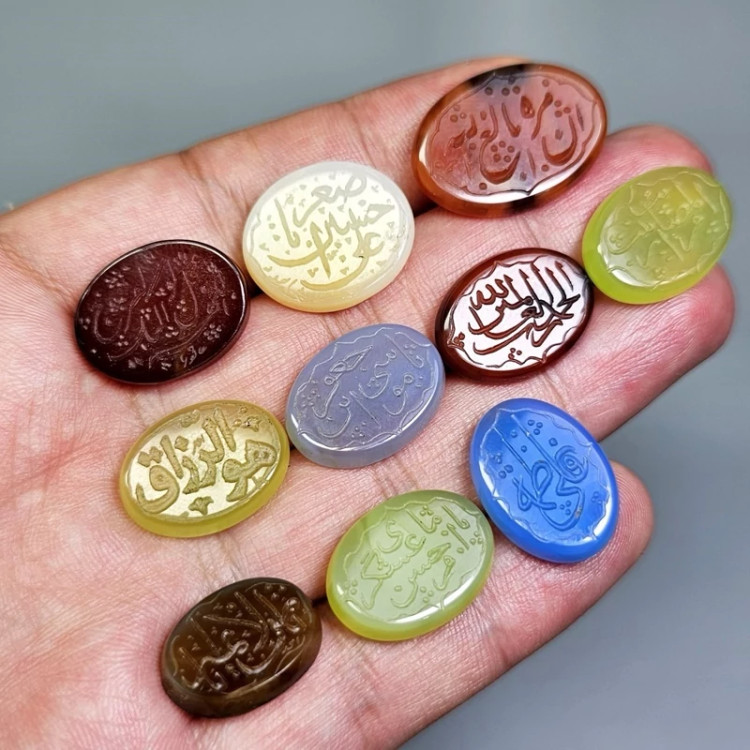 پک 10 عددی نگین های سنگ عقیق معدنی حکاکی دست کد G81122