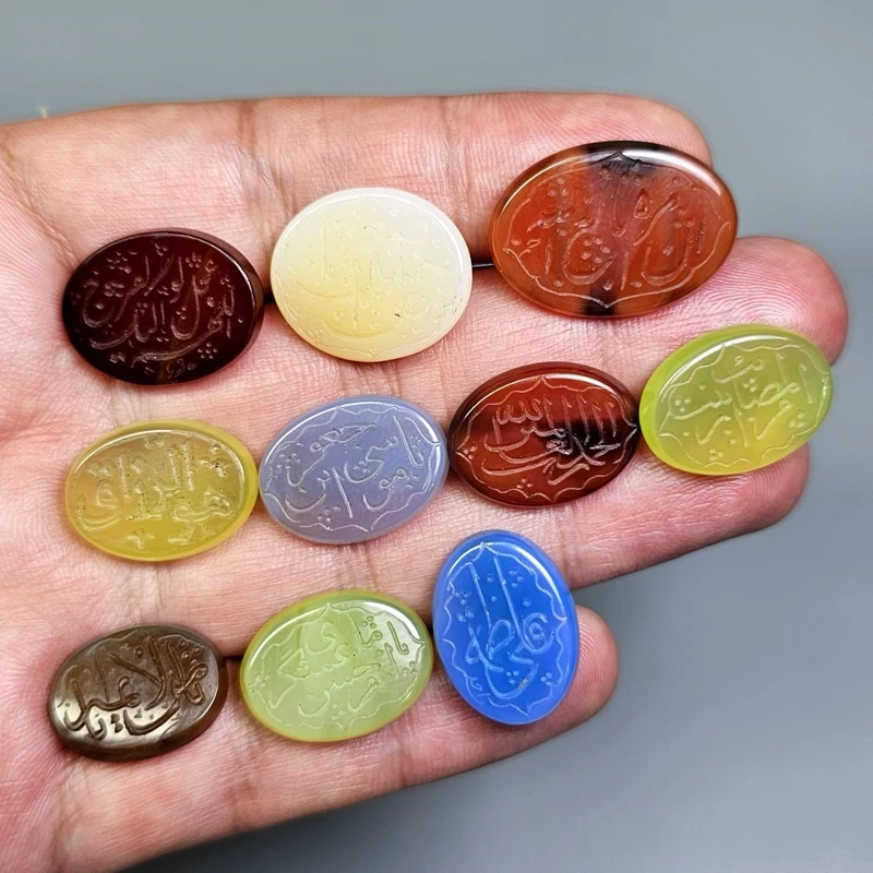 پک 10 عددی نگین های سنگ عقیق معدنی حکاکی دست کد G81122