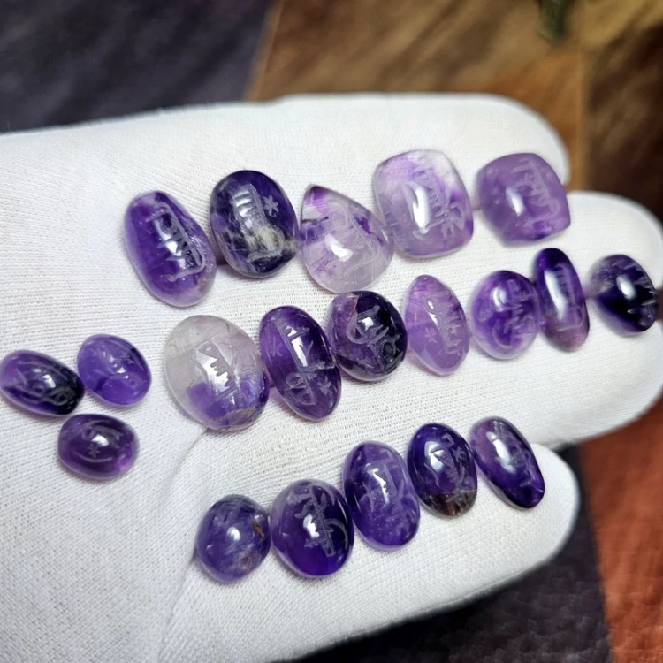 پک 20 عددی نگین سنگ آمیتیست معدنی با خط کوفی کد G81031