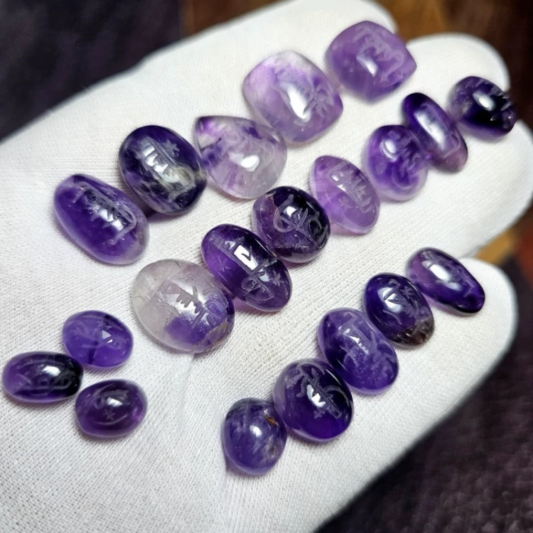 پک 20 عددی نگین های سنگ آمیتیست معدنی با خط کوفی کد G81031