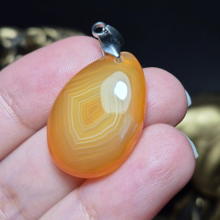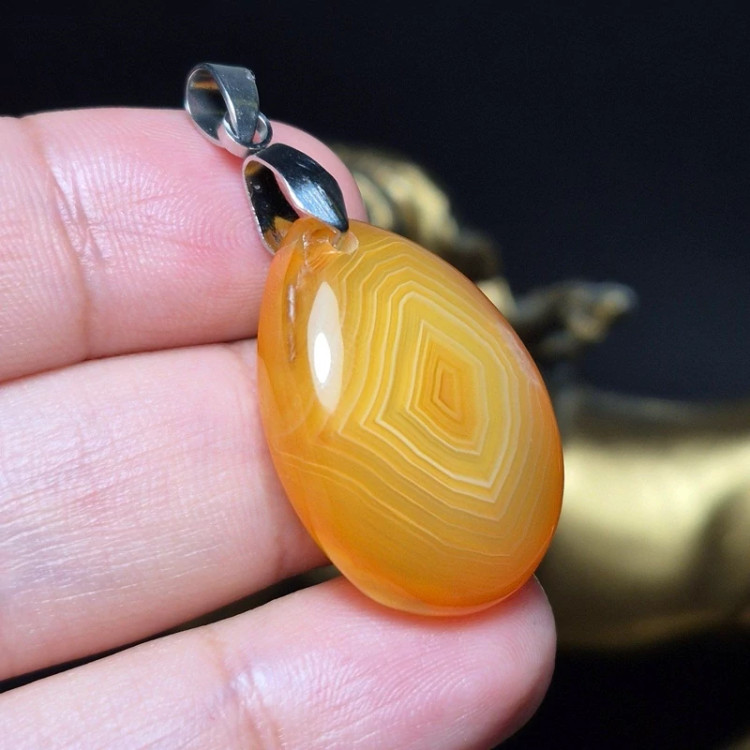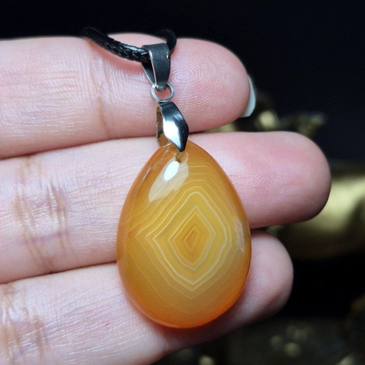 آویز گردنبند سنگ عقیق سلیمانی عسلی معدنی کد Z7109