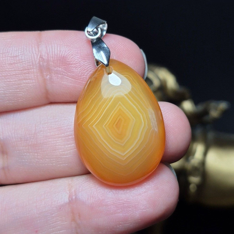 آویز گردنبند سنگ عقیق سلیمانی عسلی معدنی کد Z7109