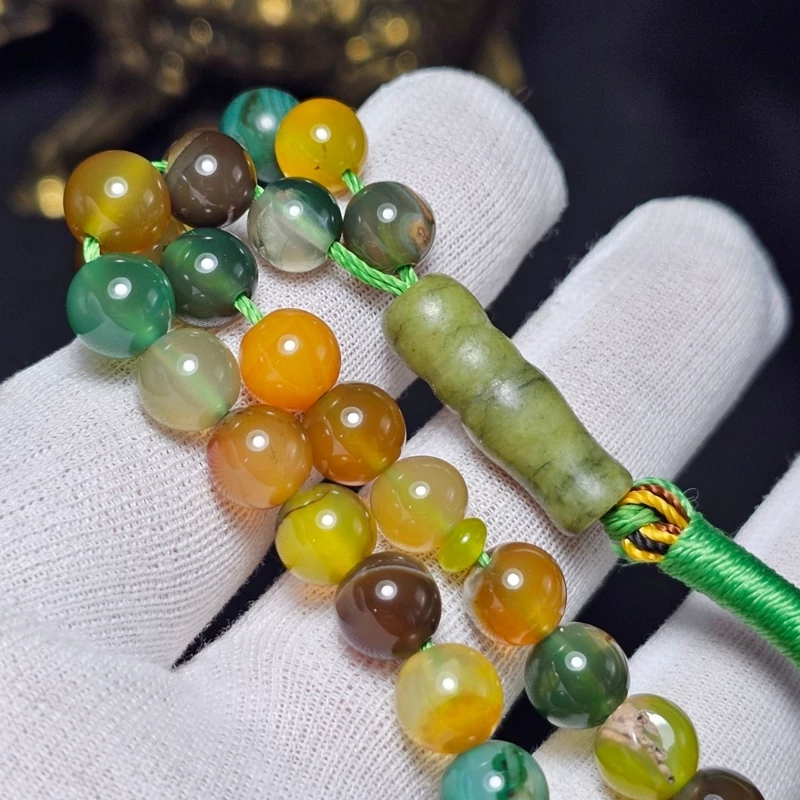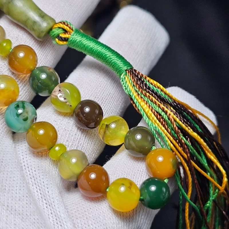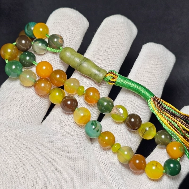 تسبیح 33 دانه سنگ عقیق سبز زرد معدنی کد 37096