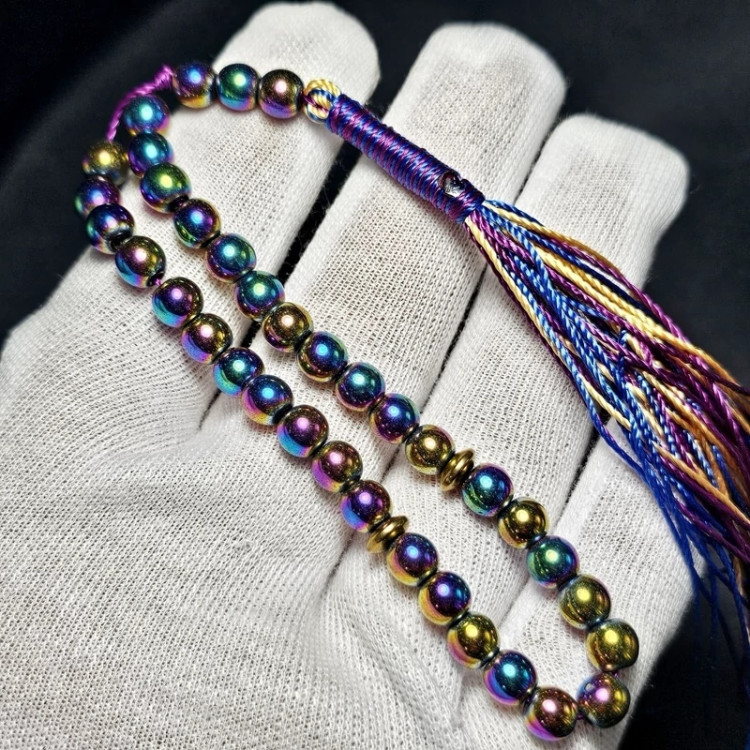 تسبیح ظریف فانتزی 33 دانه سنگ حدید صینی معدنی