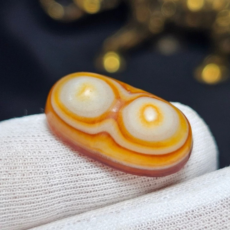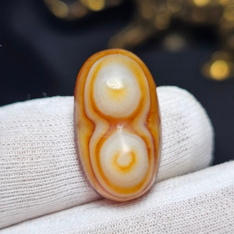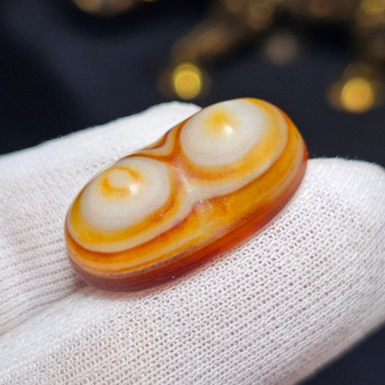 نگین سنگ عقیق سه پوست باباقوری معدنی تراش کهنه دو کوهانه کد 37255