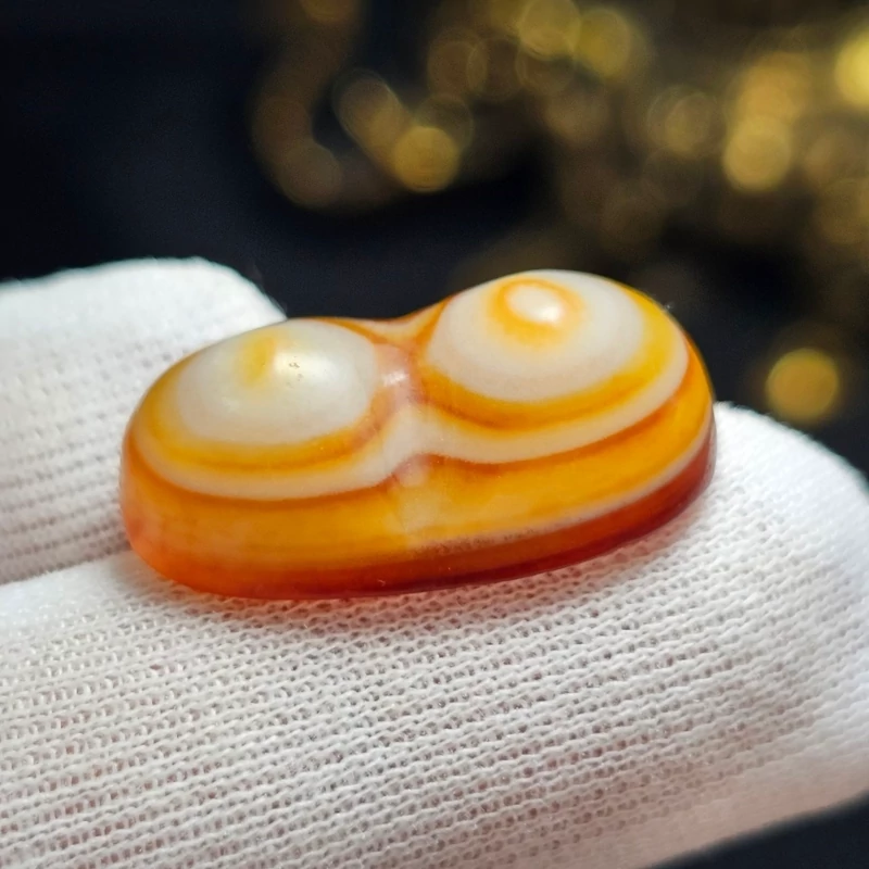 نگین سنگ عقیق سه پوست باباقوری معدنی تراش کهنه دو کوهانه کد 37255