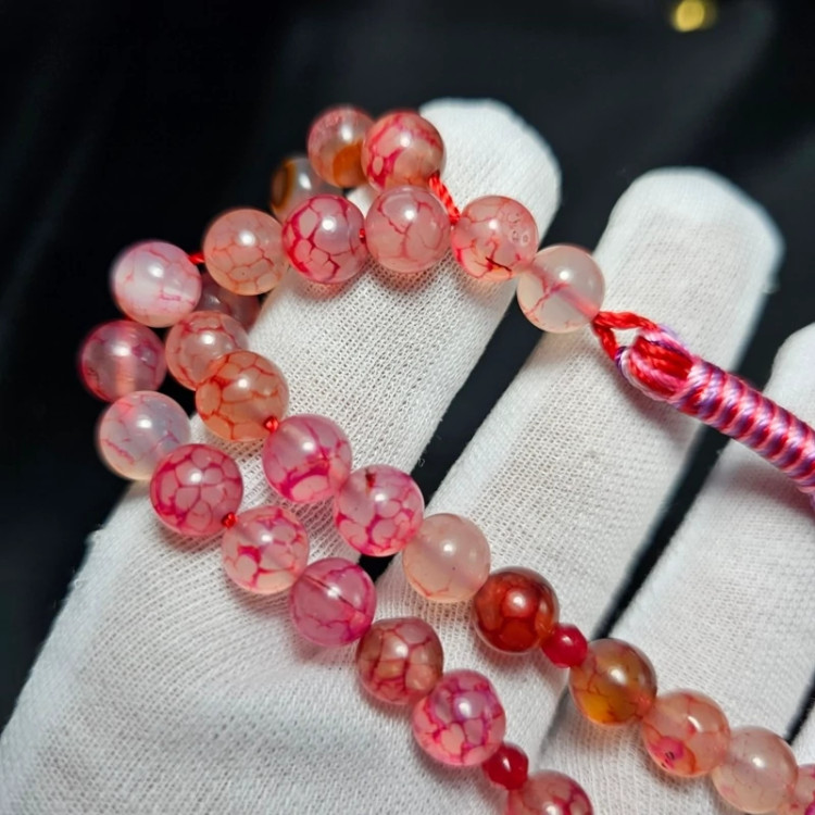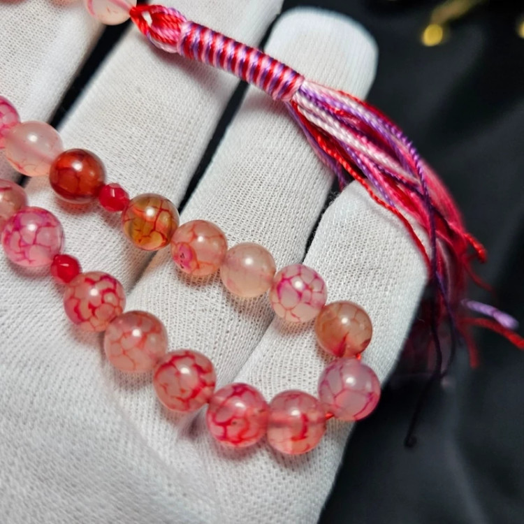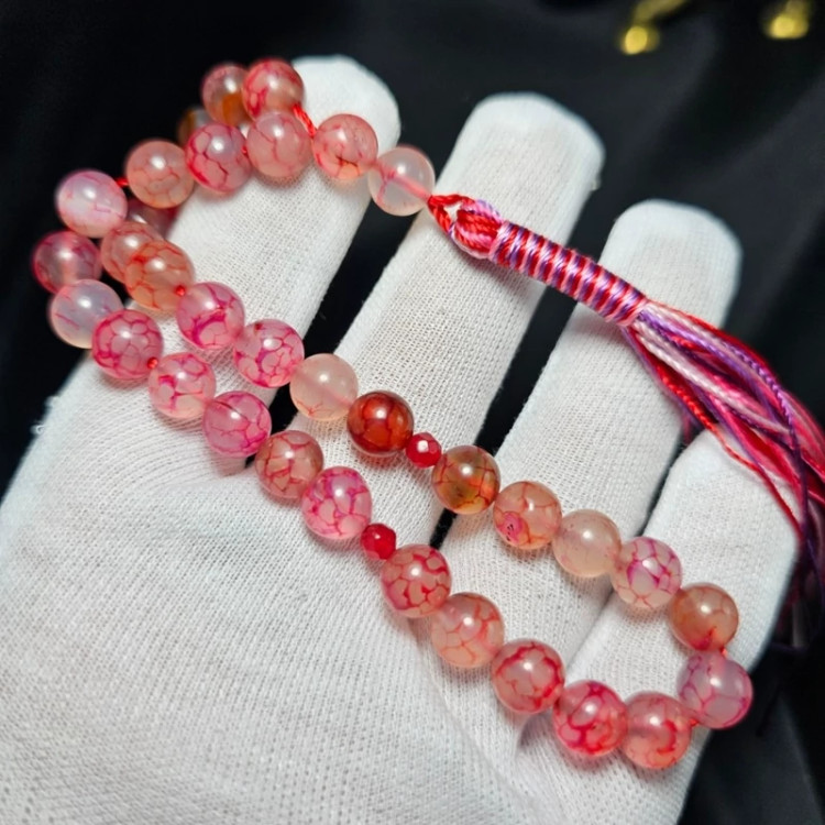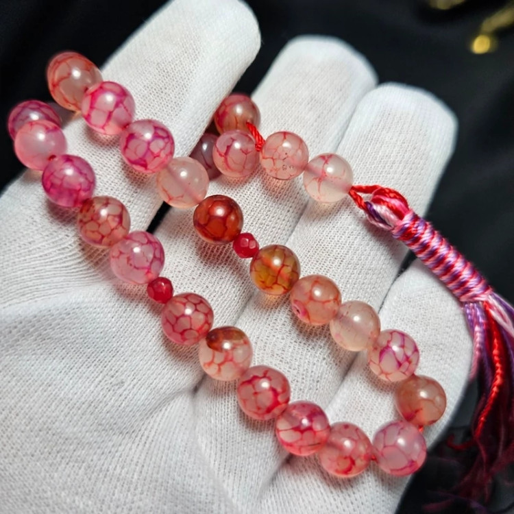 تسبیح 33 دانه سنگ عقیق صورتی دراگون معدنی