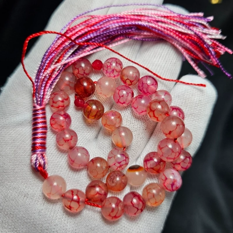 تسبیح 33 دانه سنگ عقیق صورتی دراگون معدنی