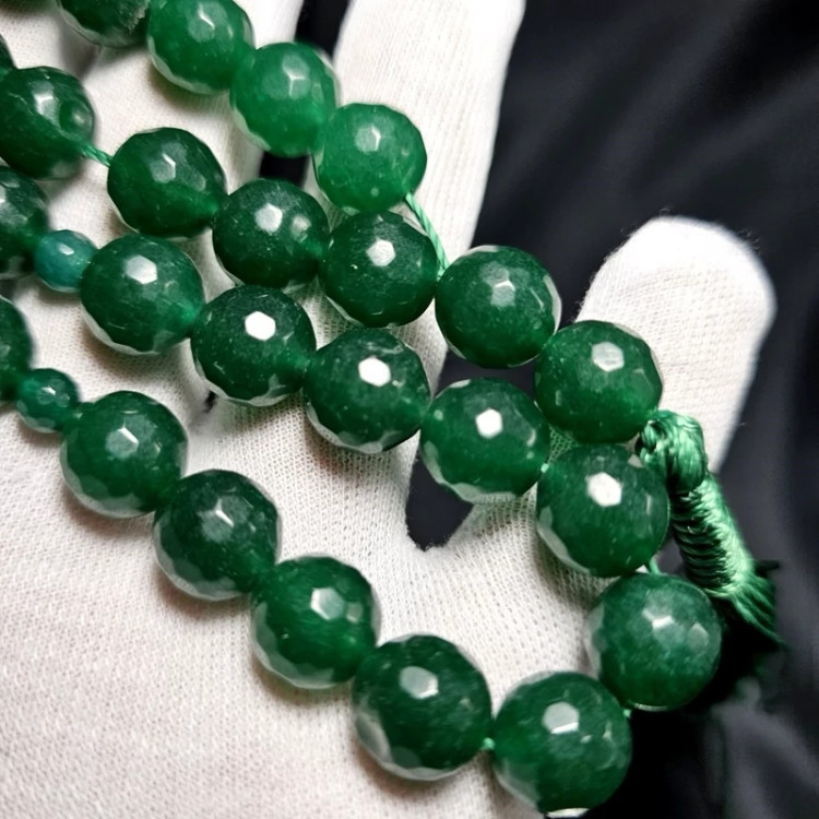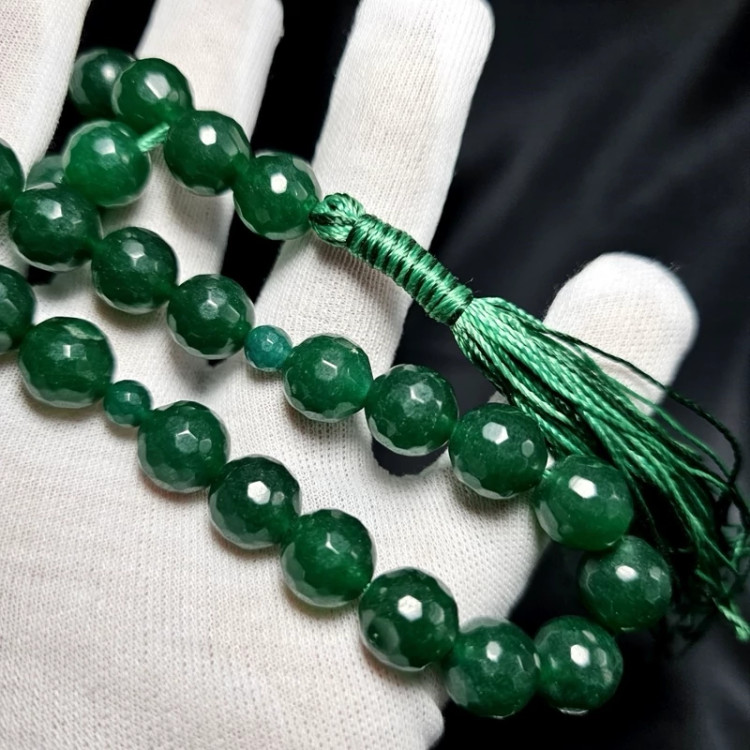 تسبیح 33 دانه سنگ جید سبز معدنی