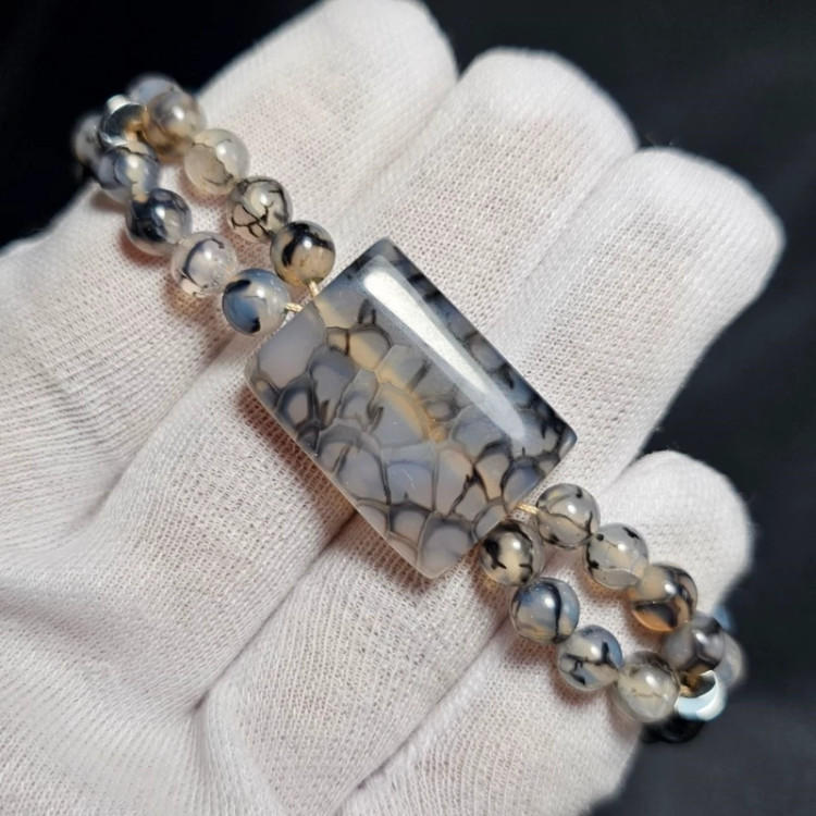 دستبند سنگ عقیق دراگون معدنی کد 37806