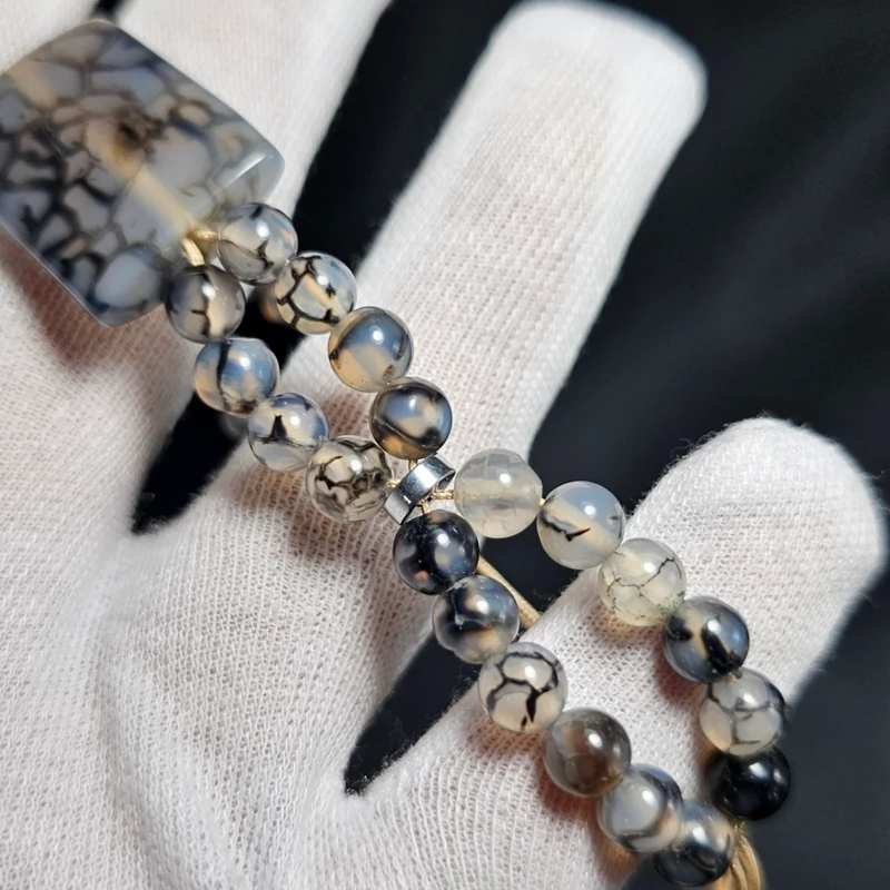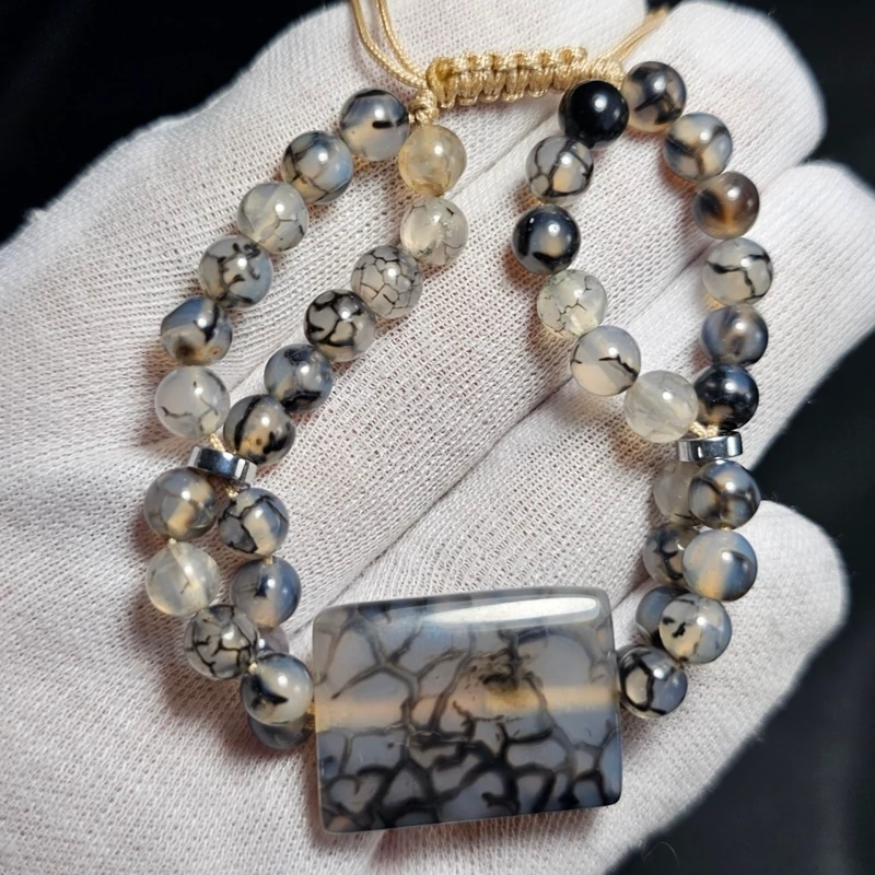 دستبند سنگ عقیق دراگون معدنی کد 37806