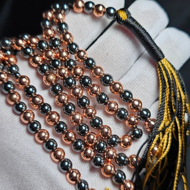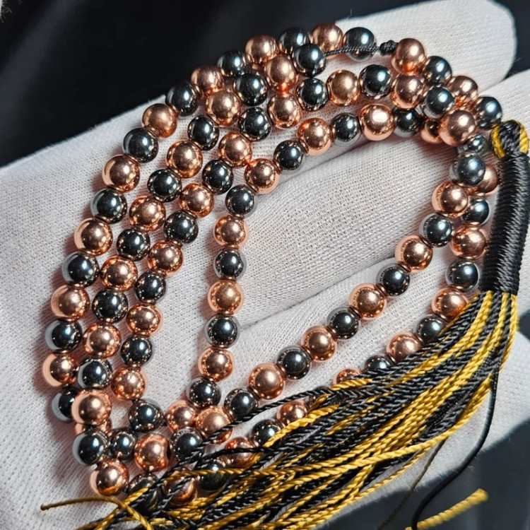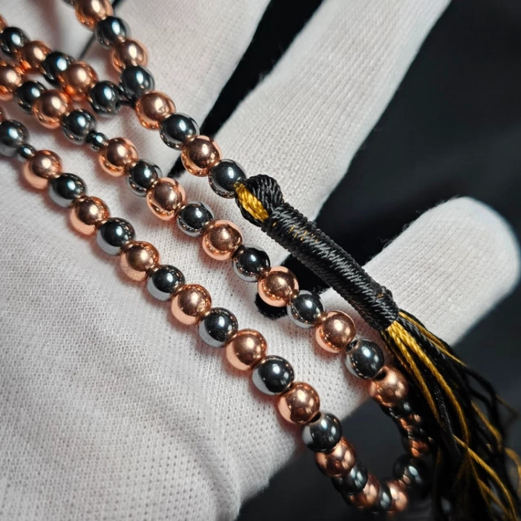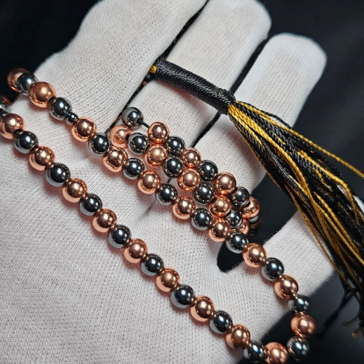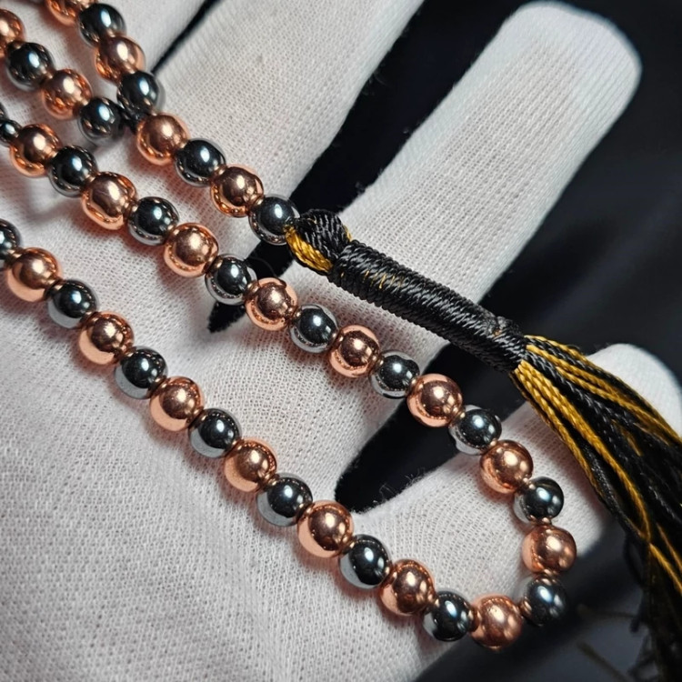 تسبیح 101 دانه حدید دودی - طلایی معدنی