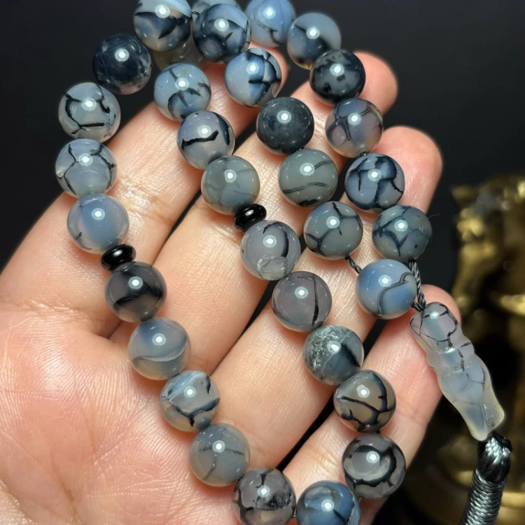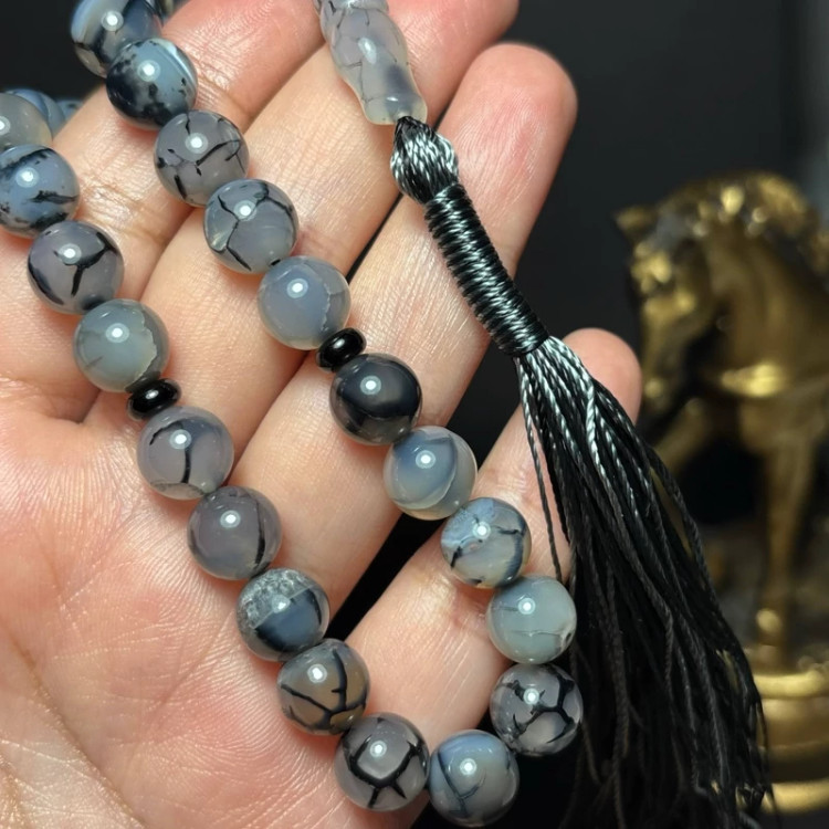 تسبیح درشت 33 دانه سنگ عقیق دراگون معدنی